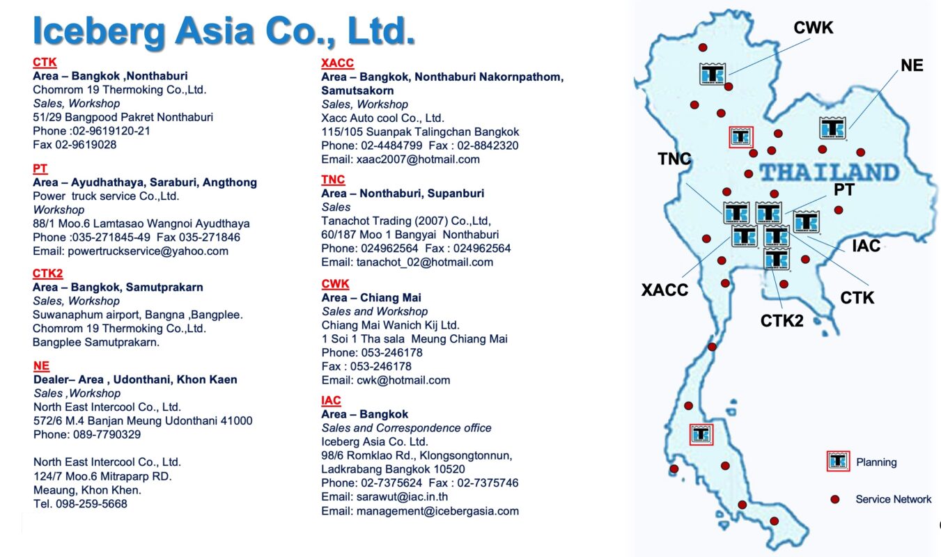 98/6 Romklao Rd., Khlongsampravet, Ladkrabang Bangkok 10520Phone: 02-737-5624, 02-087-5624Mobile: 098-125-5624Email: tanarich@iac.in.thEmail: management@icebergasia.com